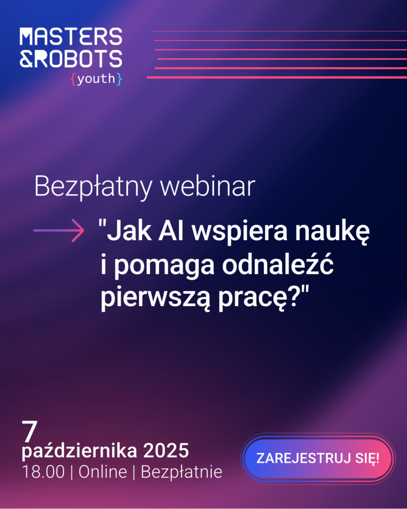 Udział w webinarze pozwoli uczestnikom poczuć przedsmak konferencji Masters & Robots Youth o rynku pracy przyszłości dla młodych ludzi, która odbędzie się już 24 października!